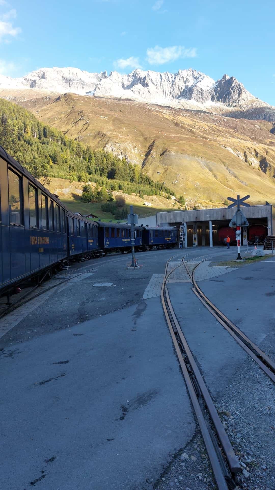 Inmiddels heeft de laatste personentrein over de Furka gereden; echter het werk gaat door.