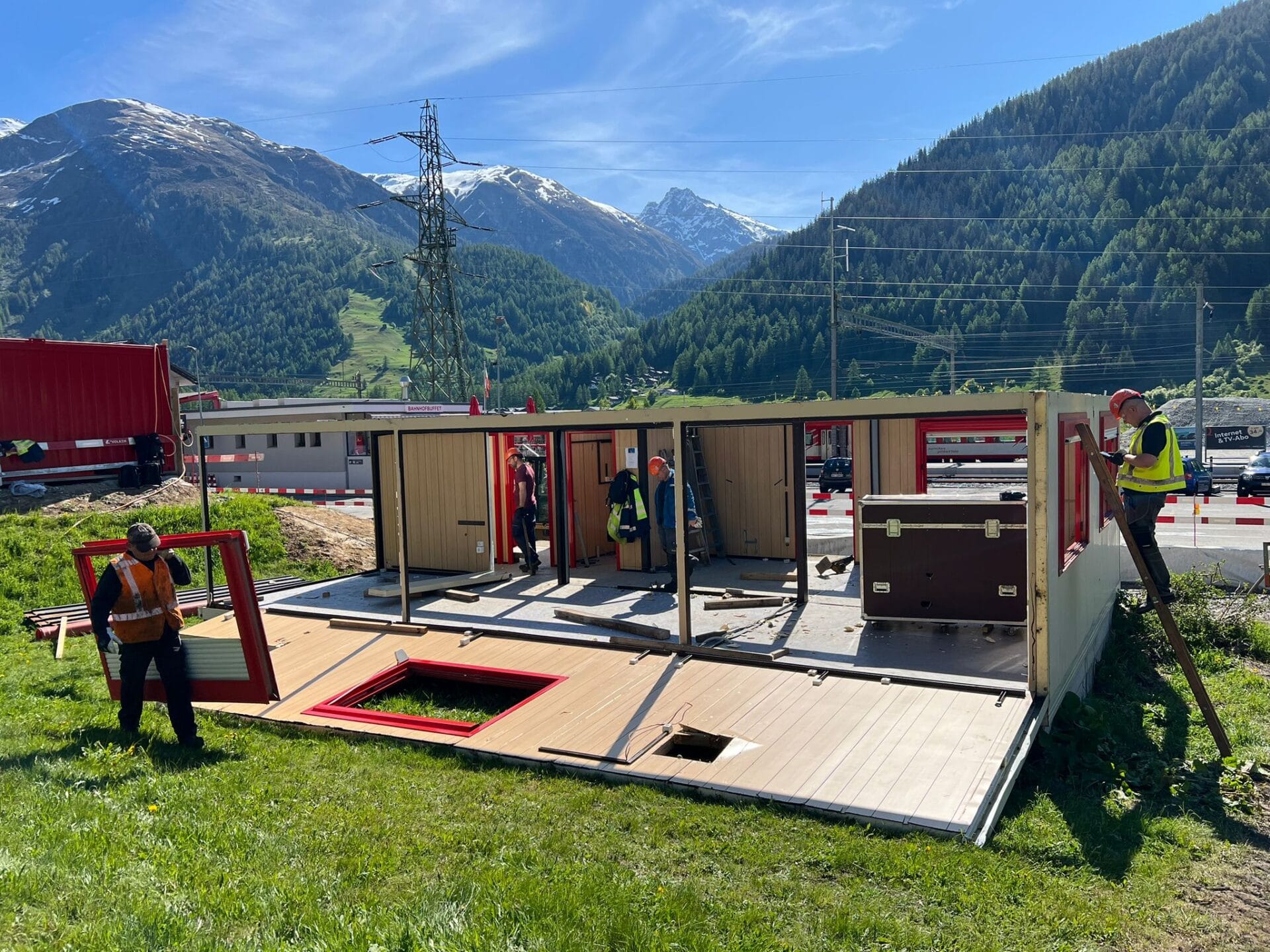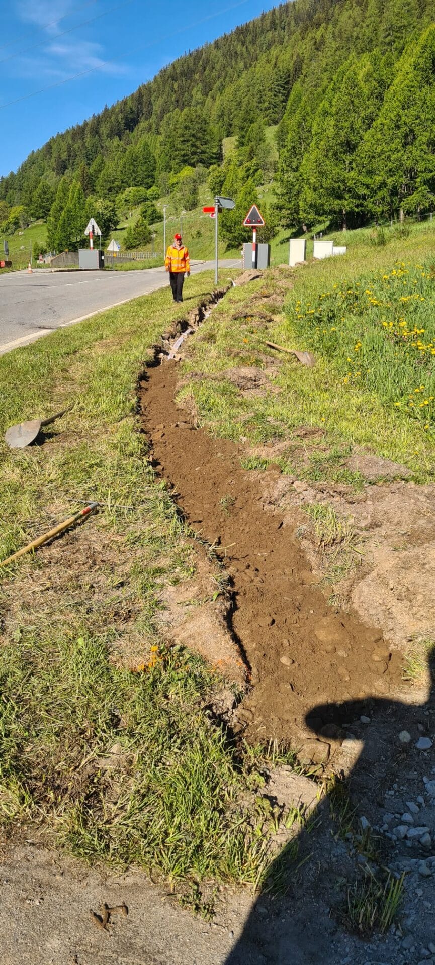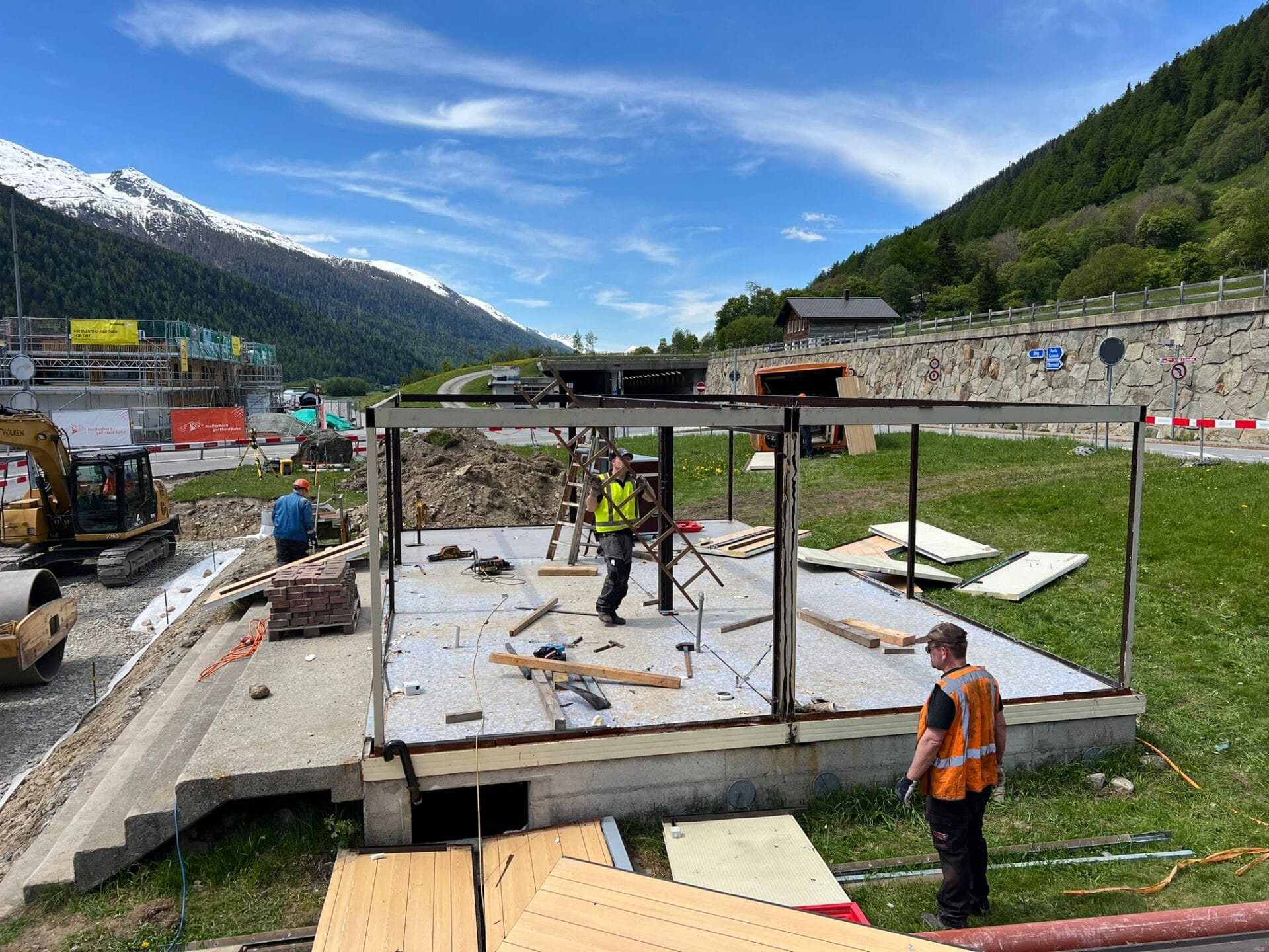 Vandaag werd het ‘Infopoint’ van de DFB in Oberwald gesloopt en werd een kabelsleuf gegraven naar de overweg in Oberwald.