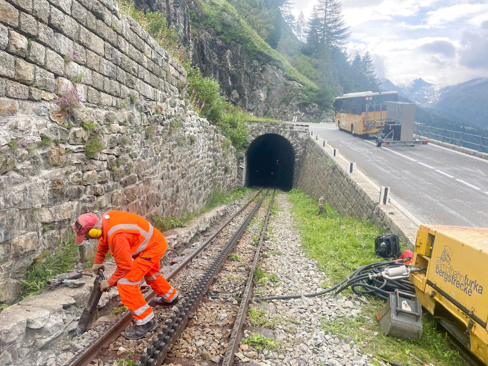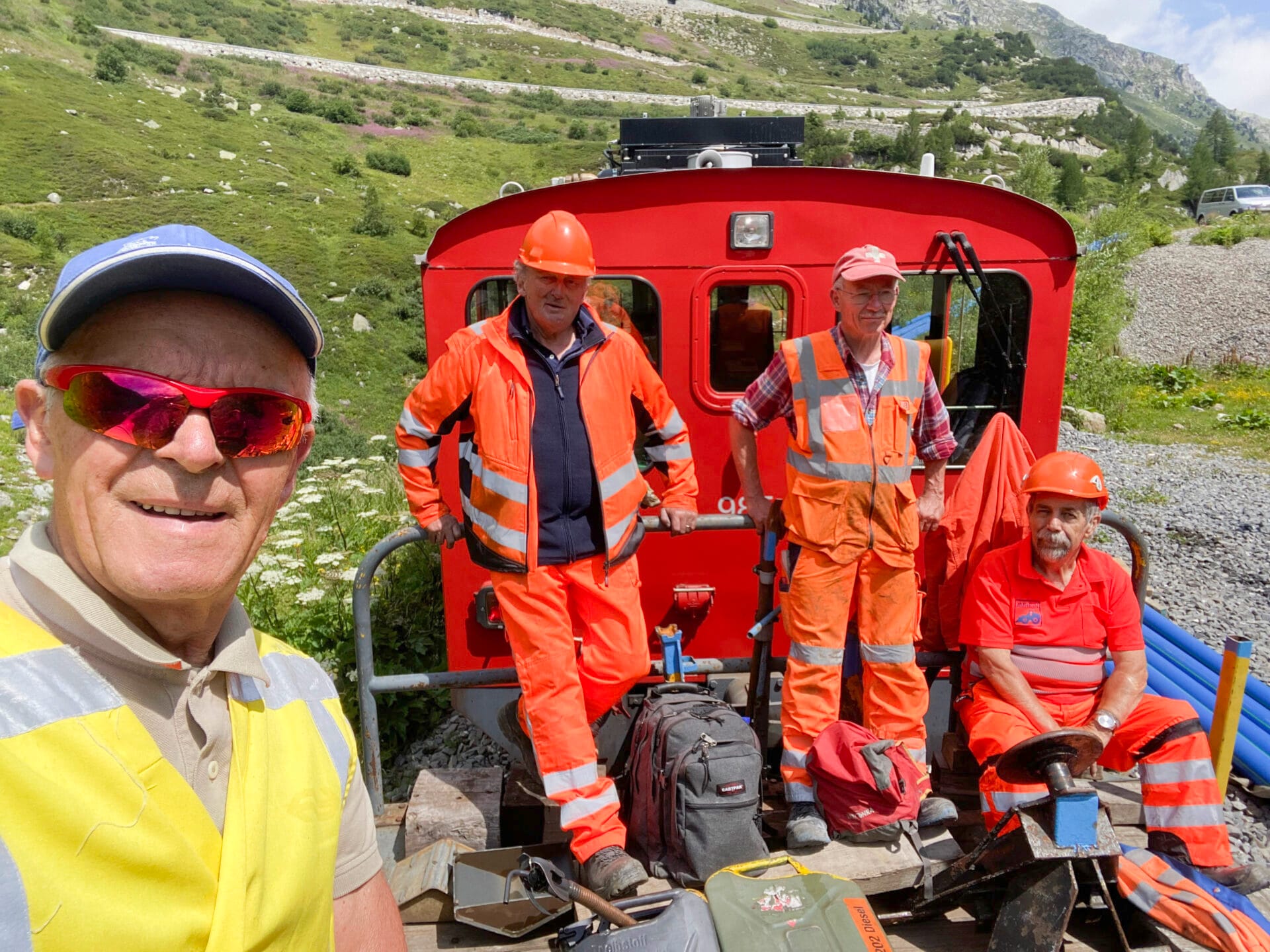 Vanochtend zijn we weer op pad gegaan met kraanmachinist Kurt. Woonwerkverkeer gewoon over de Furka naar Gletsch. Een mooi uitzicht vanochtend! Bij de ingang van de keertunnel scheidden onze wegen.